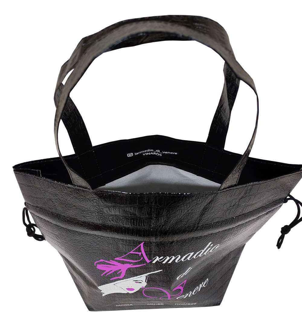 Con textura de piel. Modelo camila con cordones para cerrar tipo saquito.