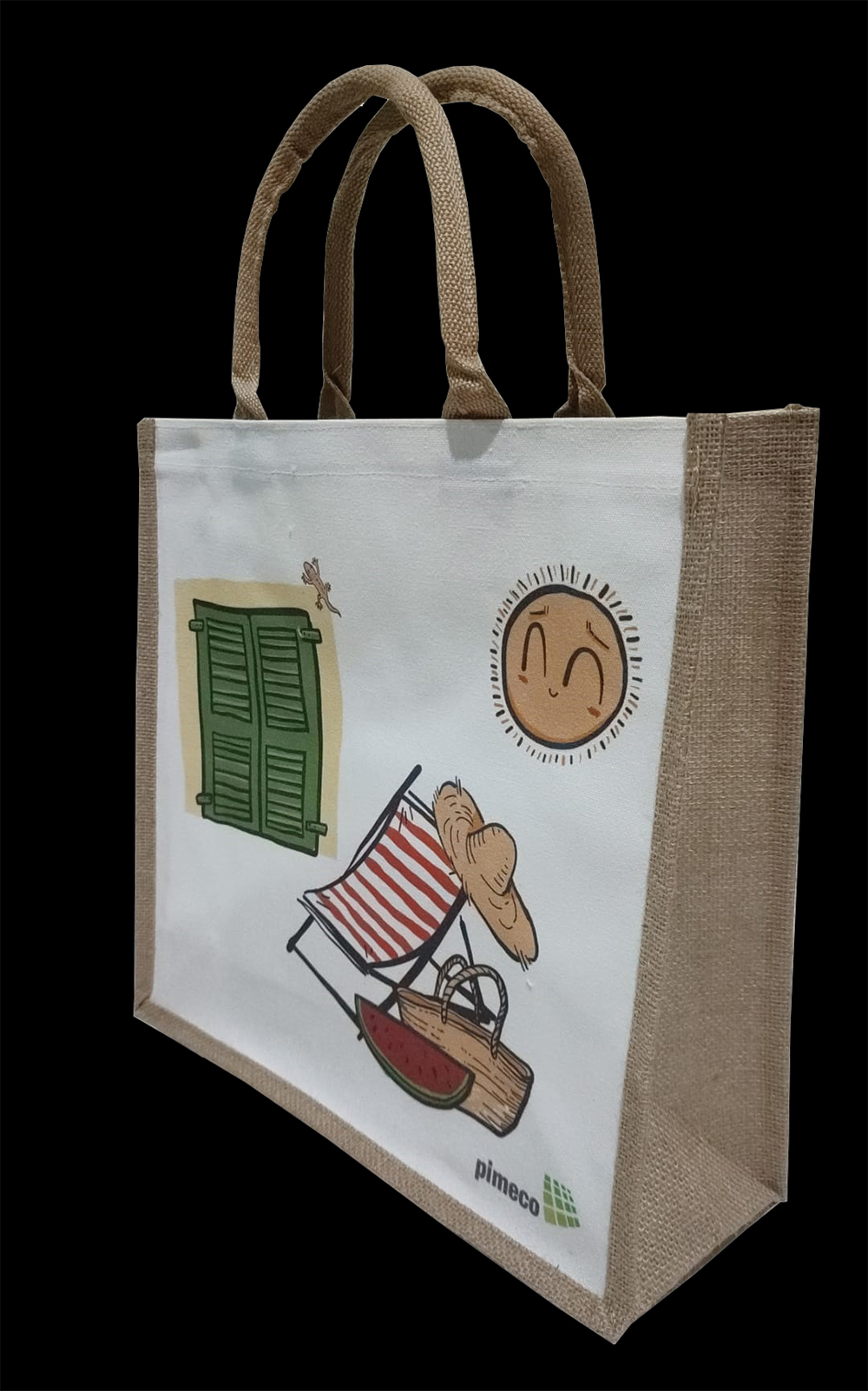 Bolsa de Algodón con los fuelles y las asas de yute.