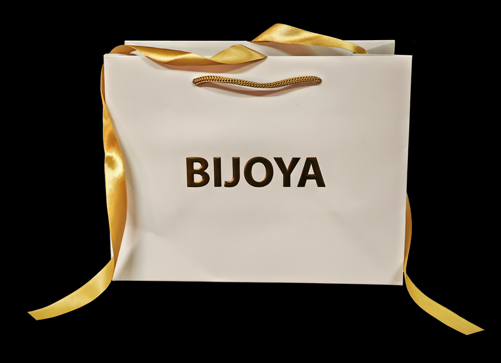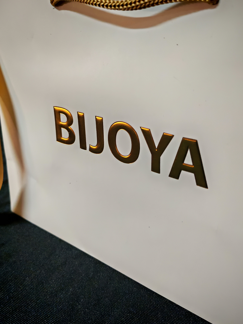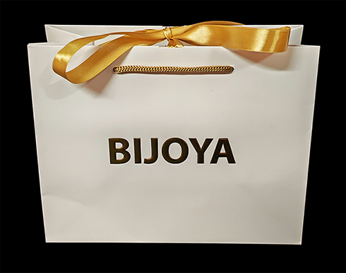 Bolsa de papel lujo plastificada mate y con stamping oro + relieve.