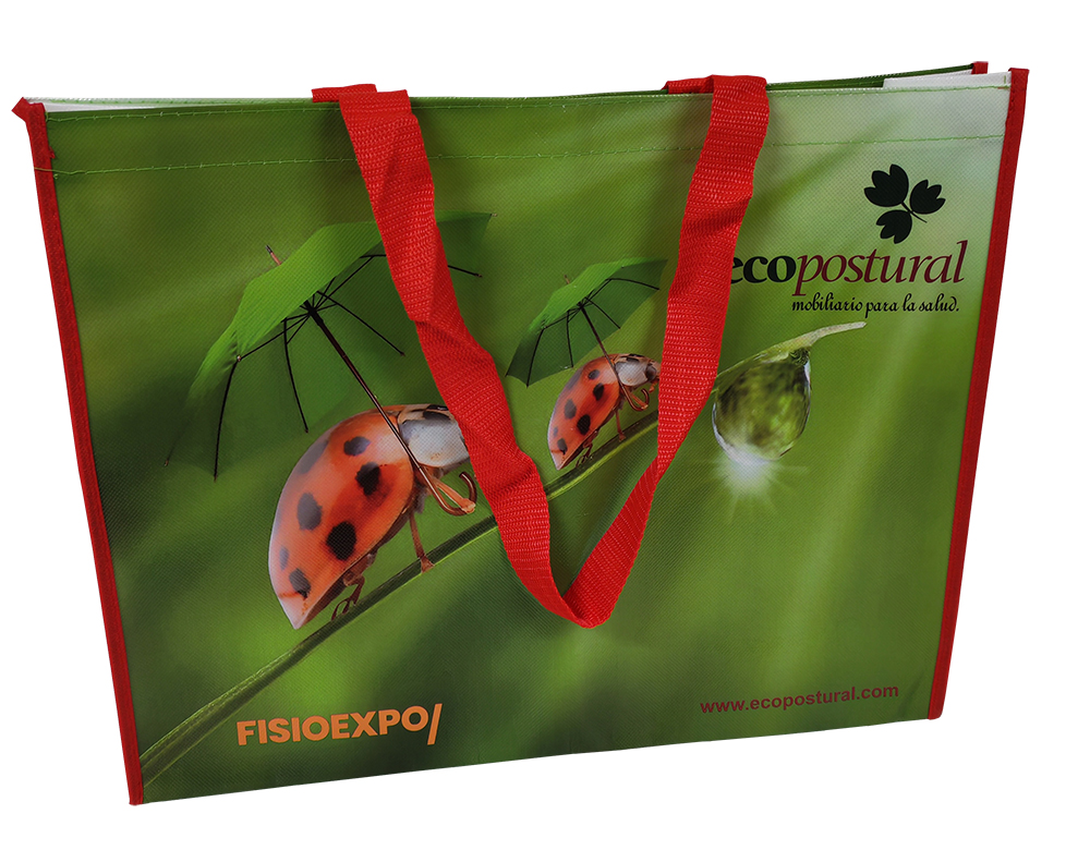 Con asas de poliéster. Alta resistencia y acabados nítidos. Bolsa ecológica y reutilizable.