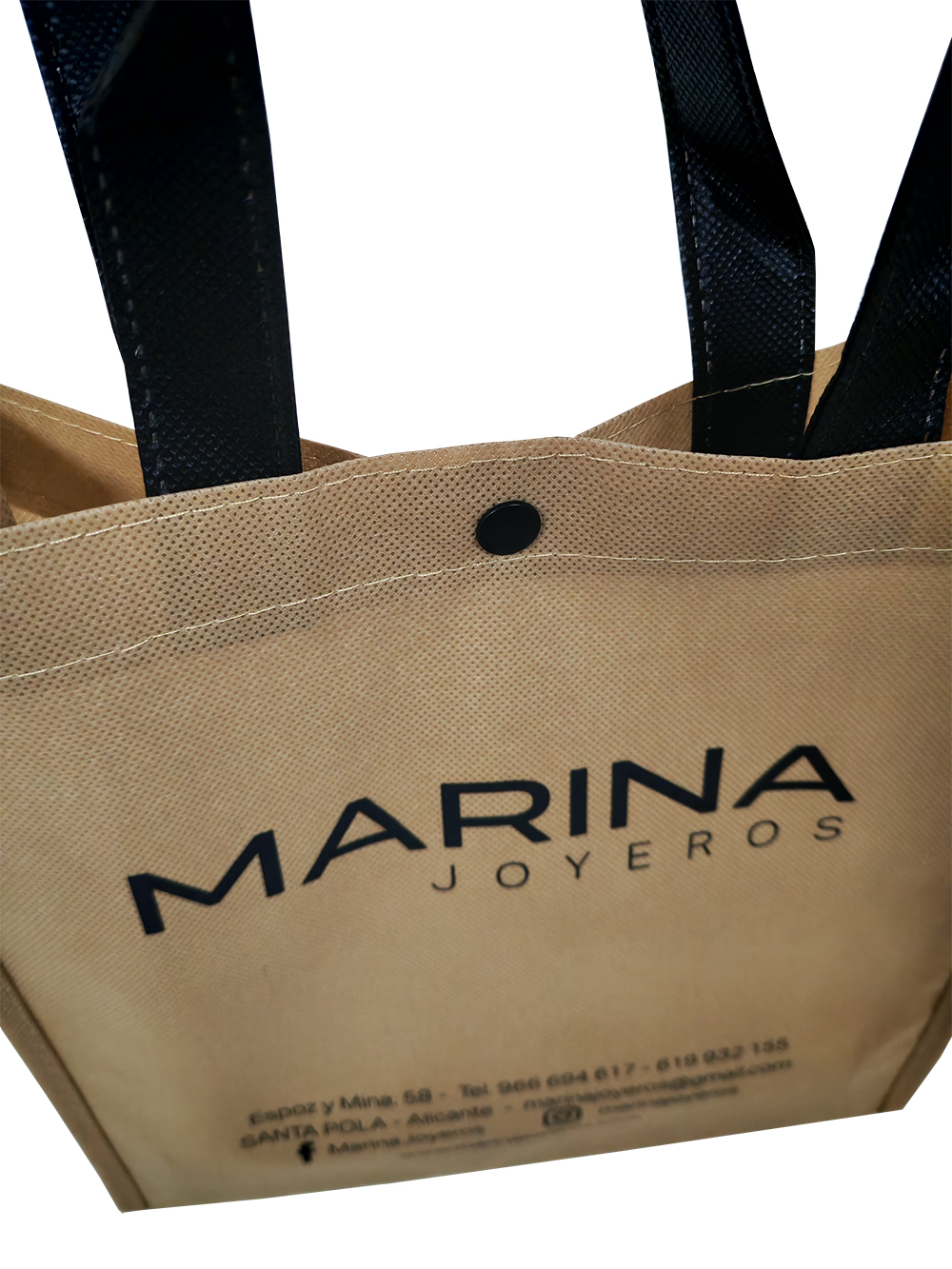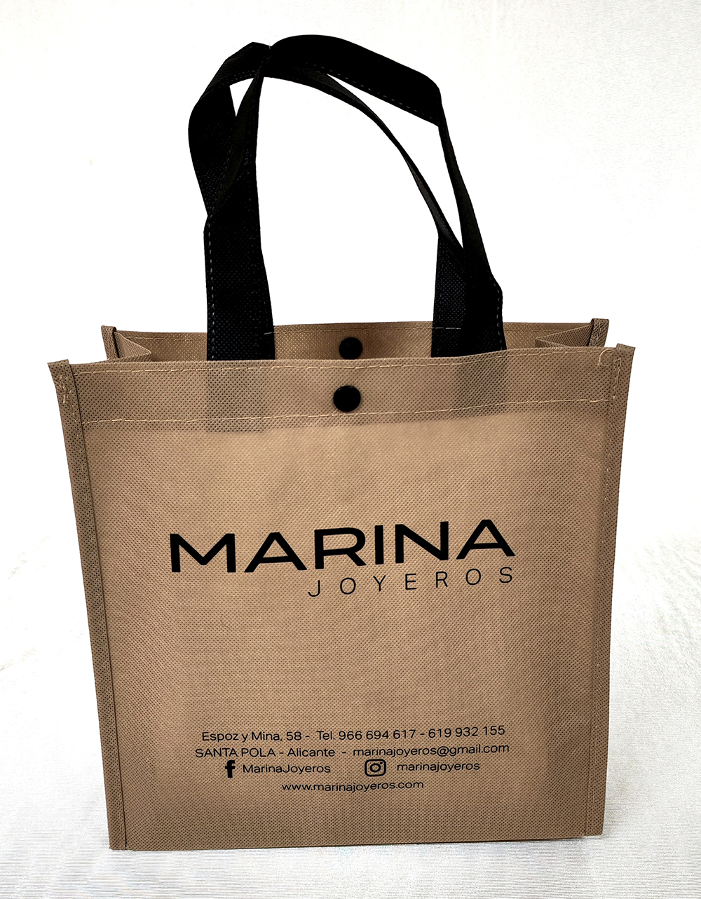 Bolsa de tela con cierre botón  para joyerías y ópticas.